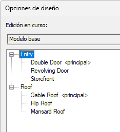 Al crear un conjunto de opciones de diseño, Revit crea automáticamente una opción primaria. Utilice este procedimiento para añadir una o más opciones de diseño secundarias en el conjunto.
