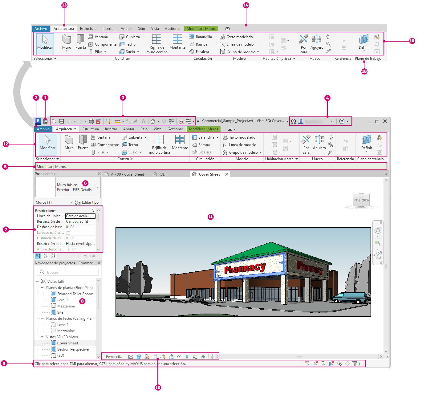 | 14 | Una ficha contextual de la cinta de opciones, que proporciona herramientas relevantes para el objeto seleccionado o la acción actual |