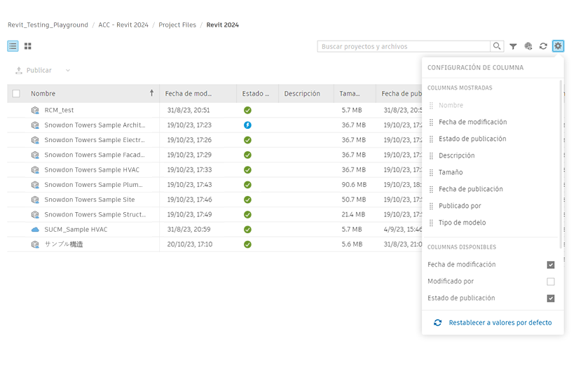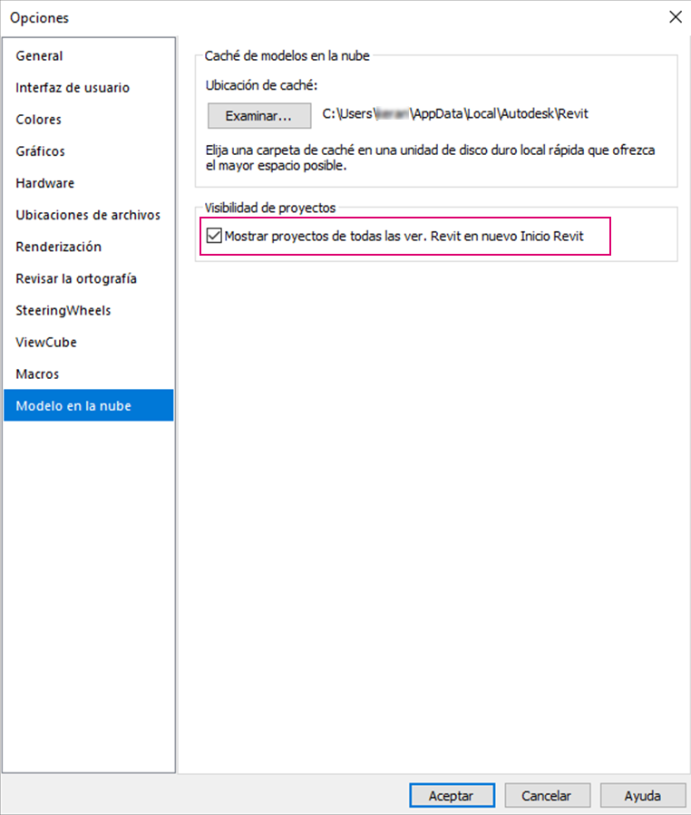 Dispone de una función de visibilidad que hace que estén visibles los proyectos de todas las versiones de Revit. Los proyectos de otras versiones de Revit distintas a la versión en ejecución actual se mostrarán con el estado desactivado. Puede activar y desactivar esta función. Para activarla, en el cuadro de diálogo Opciones