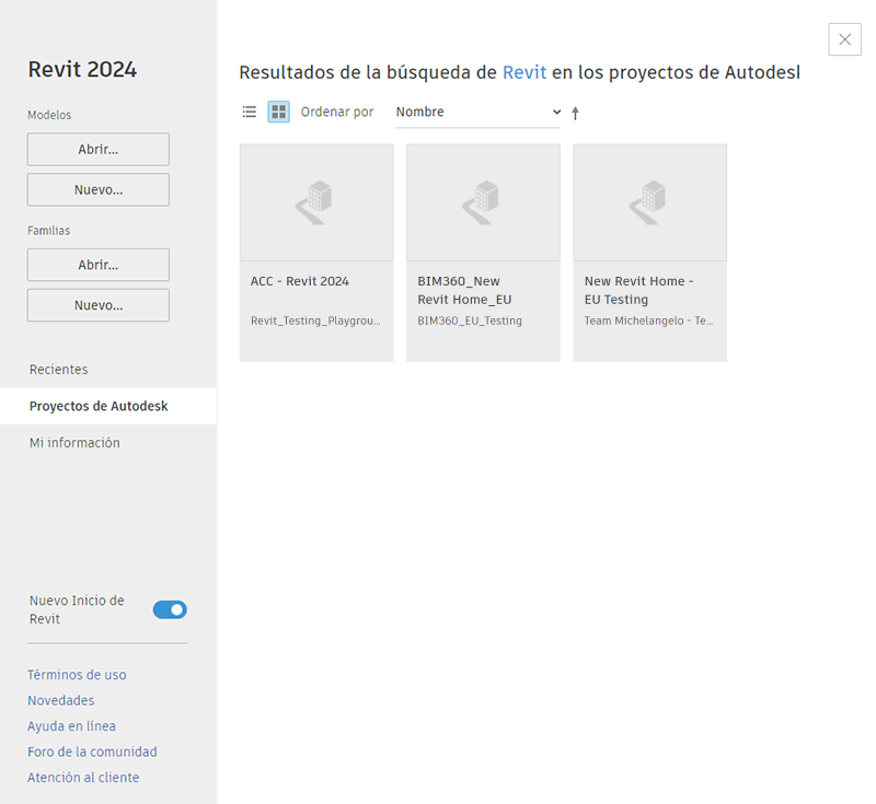 A partir de Revit 2025.2, el nuevo Inicio de Revit es la experiencia de inicio por defecto para Revit.