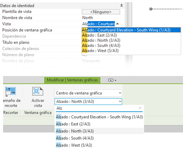 Se puede intercambiar la vista asociada por otra vista del modelo para las ventanas gráficas colocadas en planos.