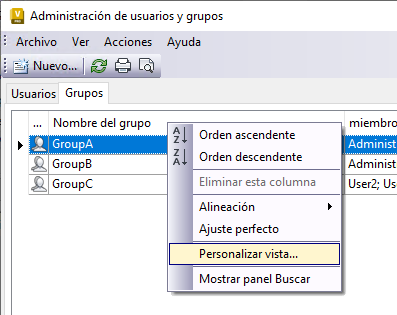 Puede personalizar su visualización añadiendo o eliminando campos de columna. Al personalizar su vista, la administración de grupos se adaptará mejor a sus necesidades.