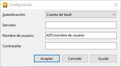 Cuenta de Vault: requiere un nombre de usuario específico de Vault con una contraseña.