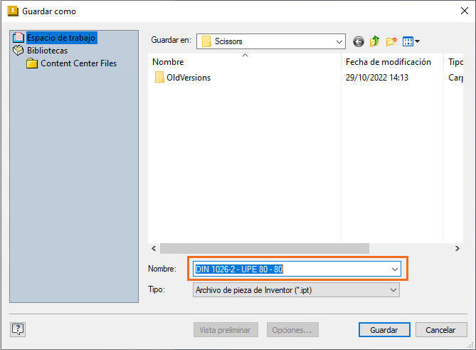 Cuando se añade una pieza del CC como una pieza personalizada, por defecto se suprimen la numeración de archivos de Vault y el guardado de VDS. Puede guardar el componente personalizado del CC en la ruta del proyecto. No hay numeración de archivos ni interacción con VDS.