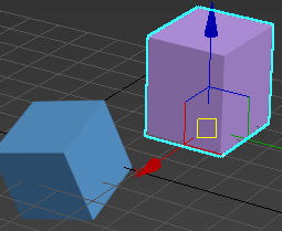Résultat : l’animation du contrôleur du boîtier bleu est enregistrée en tant que valeur prédéfinie et appliquée au boîtier violet.