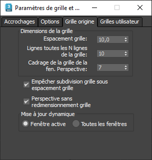 Permet de définir la taille de la grille origine dans la fenêtre Perspective.