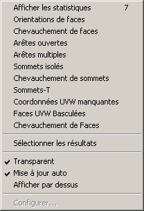 Met en surbrillance les faces coplanaires s'interpénétrant. Il est conseillé d'éviter si possible tout chevauchement pour empêcher la formation d'anomalies.