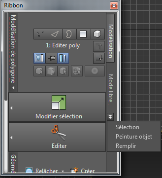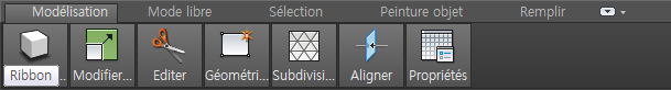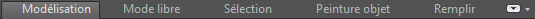 Active ou désactive l'affichage des onglets du ruban : Outils de modélisation graphite, Mode libre, Sélection et Peinture objet.