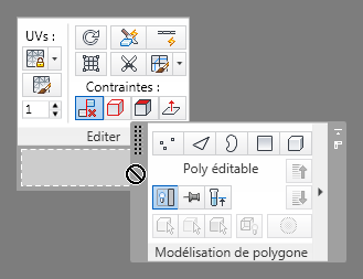 Outre les outils de modélisation fournis par les boutons des groupes de fonctions et les autres commandes, le ruban offre des fonctions de gestion d'interface sous la forme de boutons et d'un menu contextuel.