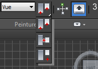 L’état des trois outils de gestion des transformations (système de coordonnées, centre et contraintes d'axe) est stocké avec chaque type de transformation. Lorsque vous passez de Déplacement à Rotation et à Echelle, les outils de gestion des transformations affichent la combinaison qui était la leur lors de la dernière utilisation de cette transformation.
