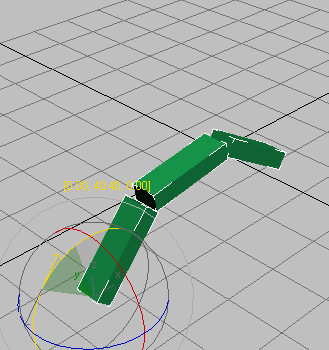 Lors de la rotation d’une chaîne d’objets liés (c-à-d. une hiérarchie) alors que l’option Utiliser centre point de pivot est activée, la rotation s’applique de la même façon à chaque objet de la chaîne. Le résultat est un enchaînement de rotation, qui simplifie la simulation d'effets tels que l'enroulement des doigts.
