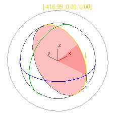 Les poignées d'axe sont des cercles autour de la boule de commande. Faites glisser la souris à un endroit quelconque de l'une des poignées pour appliquer une rotation à l'objet le long de cet axe. A mesure que vous faites pivoter l'objet le long de l'axe X, Y ou Z, une section transparente fournit une représentation visuelle de la direction et de la quantité de rotation. Si vous effectuez une rotation supérieure à 360°, la section se chevauche et l'ombrage devient de plus en plus opaque. 3ds Max affiche en outre des données numériques pour indiquer une mesure de rotation précise.