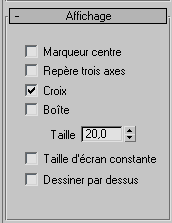 Vous permet de spécifier la façon dont l'objet assistant apparaît dans les fenêtres. Par défaut, le type d'affichage est défini sur Croix uniquement et la Taille est réglée sur 20,0. Vous pouvez activer plusieurs paramètres d'affichage si vous le souhaitez.