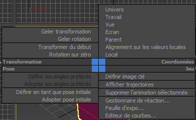 Les commandes de ce quadrant sont conçues à l'origine pour faciliter l'animation des personnages. Les commandes Geler permettent de définir la pose initiale du personnage. Vous pouvez, par la suite, revenir à la pose initiale à l'aide des options sur zéro.