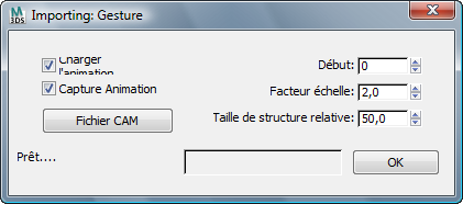 Lorsque cette option est activée, l'intégralité de l'animation est importée. Lorsqu'elle est désactivée, seule la pose de base du fichier de capture de mouvements est importée.