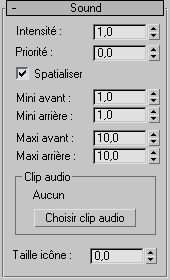 L'assistant Sound (son) vous permet d'intégrer des sons spatiaux (en 3D) ou ambiants dans la scène.