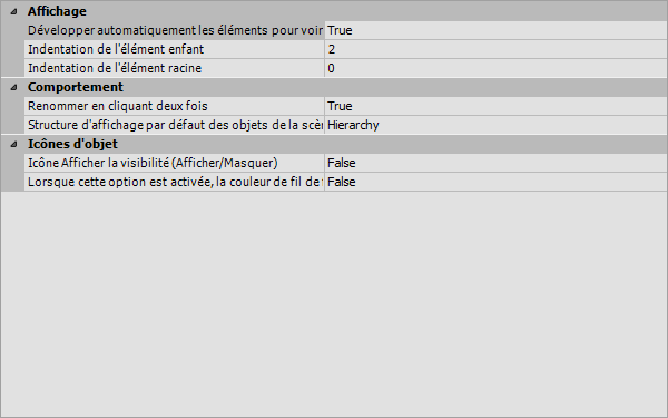 Les options de ce groupe de fonctions sont pour l'apparence et le comportement de la liste hiérarchique Jeux d'états.