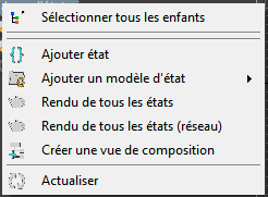 Ces options s'affichent lorsque vous cliquez avec le bouton droit sur l'entrée "Jeux d'états" dans la hiérarchie.