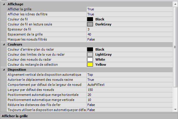 Les options de ce groupe de fonctions sont pour l'apparence et le comportement de la vue Compositeur.