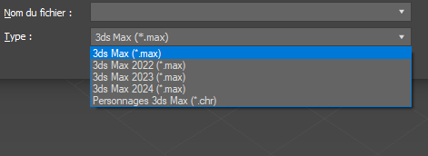 Dans la liste déroulante Type, choisissez une version antérieure de 3ds Max.