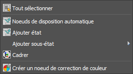 La vue Compositeur comprend deux menus contextuels qui permettent d'assembler rapidement les jeux d'états. Pour plus d'informations sur les options spécifiques, reportez-vous au menu Etats dans la rubrique sur la boîte de dialogue Jeux d'états.
