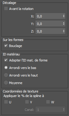 - Entraîne l'adoption du ou des ID matériaux de la ou des splines sous-jacentes par l'objet.