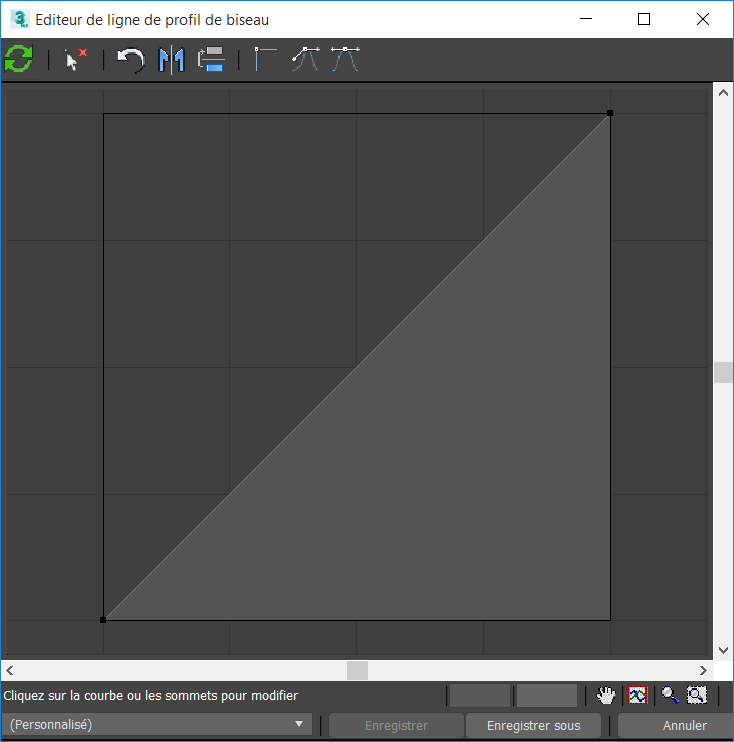 - Panneau de commandesGroupe de fonctions ModifierListe des modificateursProfil biseauPanneau déroulant ParamètresAmélioréPanneau déroulant amélioréEditeur de ligne de profil en long biseau