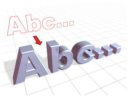 Cet exemple montre la création d'un texte en 3D standard, biseauté à l'identique sur ses deux faces.
