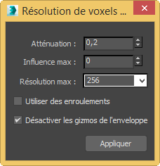 Utilisez la fenêtre Résolution de voxels géodésiques pour accéder aux options de résolution de voxel.