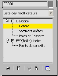 - Dans l'affichage de la pile, ouvrez la hiérarchie du modificateur Elast., puis cliquez sur Poids et Ressorts.
