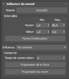 - Sélectionne le type d'influence : par sommet, par élément, ou par objet.