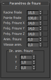Définit le vecteur de direction de l'animation frisure. Valeur par défaut = 0,0. Intervalle = de -1,0 à 1,0.