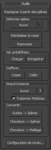 Permet de copier tout l'objet cheveux dans un seul nouvel objet spline. L'objet source est conservé.