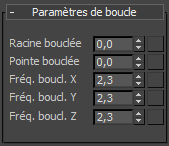 Définit la fréquence de l'effet de boucle sur chacun des trois axes. Valeur par défaut : 0,0. Intervalle : de 0,0 à 100,0.