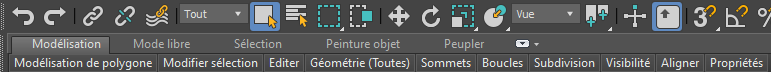 Par défaut, lorsque vous démarrez 3ds Max, une version réduite du ruban s'affiche directement sous la barre d'outils principale.