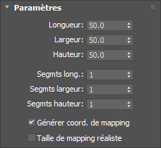 panneau déroulant Paramètres, affectez la valeur 4 aux paramètres Segmts long., Segmts largeur et Segmts hauteur.