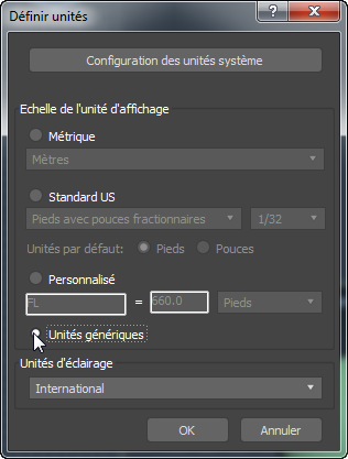 zone Echelle de l'unité d'affichage, vérifiez que l'option Unités génériques est sélectionnée.