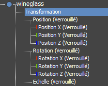 Le nom de l'entrée Transformation et de tous ses enfants (branches et feuilles) est désormais suivi de la mention "(Verrouillé)" dans l'arborescence de la vue piste.
