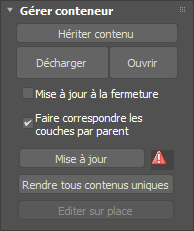 s'affiche en regard du bouton Mettre à jour. Cette icône indique qu'une mise à jour est nécessaire pour maintenir la synchronisation avec le conteneur d'origine, celui créé par l'auteur.