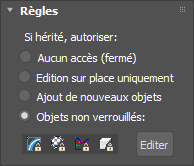 Comme vous l'avez constaté, vous pouvez verrouiller des pistes spécifiques pour les objets d'un conteneur, mais si vous utilisez la règle Edition sur place uniquement, l'héritier du conteneur peut facilement contourner vos verrous. En revanche, si vous utilisez une autre règle, l'héritier doit se conformer à vos verrous, sauf si vous les modifiez.