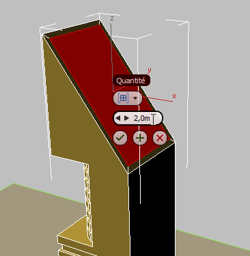 3ds Max affiche le chariot de commandes de l'outil Extruder.