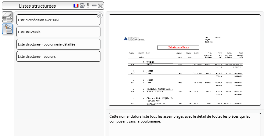 Les palettes Préférences documents sont utilisés pour la création des documents à partir du modèle Advance Steel.