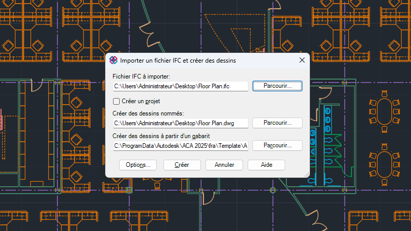 Importation ou exportation IFC : le processus d’importation IFC s’effectue désormais correctement après la génération des fichiers de dessin.