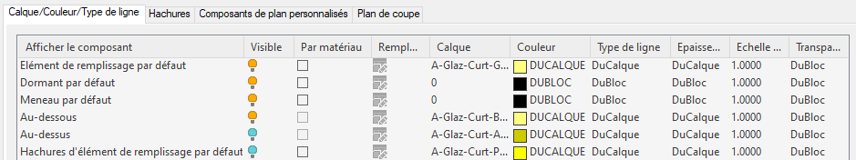 à une hauteur supérieure à celle spécifiée dans Hauteur du plan de coupe | les objets sont affichés en fonction des propriétés indiquées pour le composant Au-dessus du plan de coupe dans l'onglet Calque/Couleur/Type de ligne. |