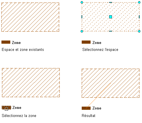 Cette procédure permet d'attacher des espaces et des zones à une zone sélectionnée.