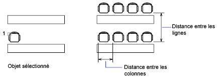 Crée un réseau de rangées et de colonnes de copies des objets sélectionnés.