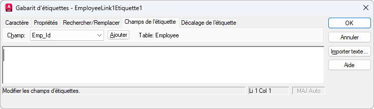 Ajoute à l'étiquette le champ sélectionné dans la liste.