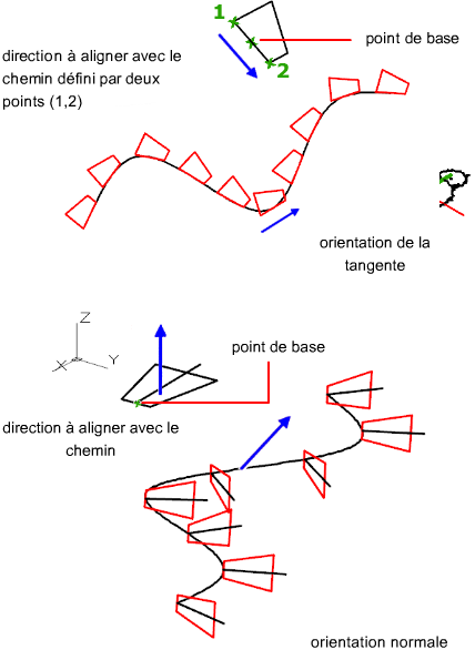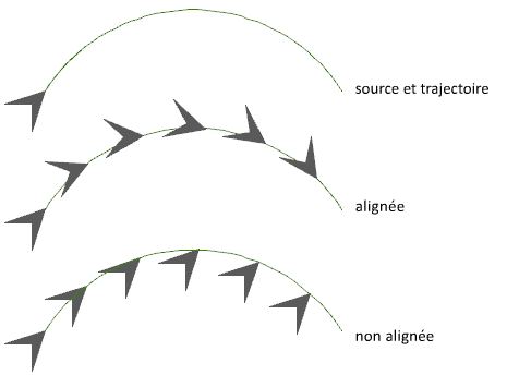 Indique s'il faut aligner chaque élément de sorte qu'il soit tangent à la direction de la trajectoire. L'alignement est effectué par rapport à l'orientation du premier élément.