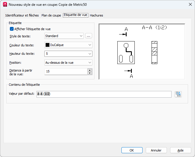 Onglet Etiquette de vue (Gestionnaire de styles de vue en coupe)