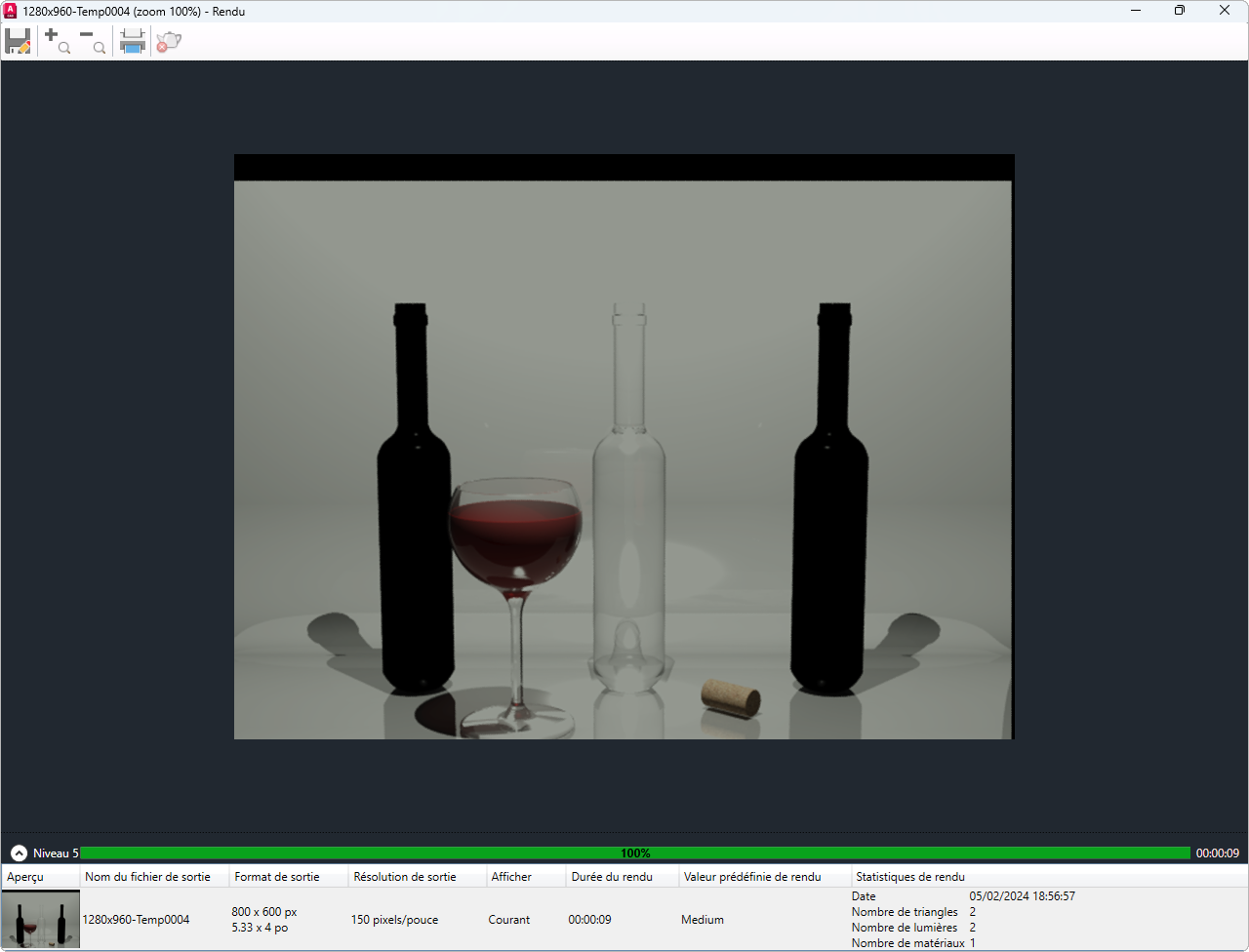 Le rendu d'un dessin apparaît toujours dans sa fenêtre de rendu correspondante.
